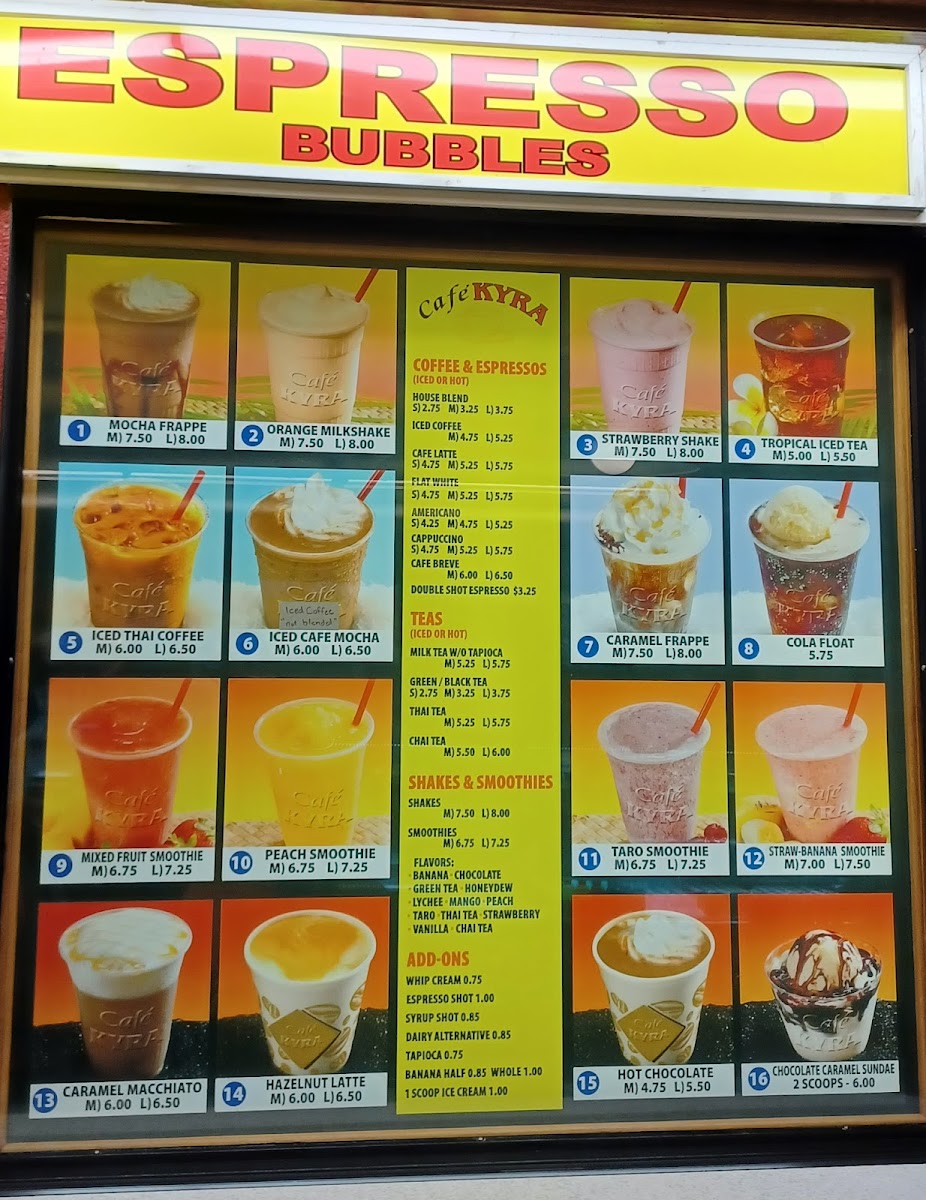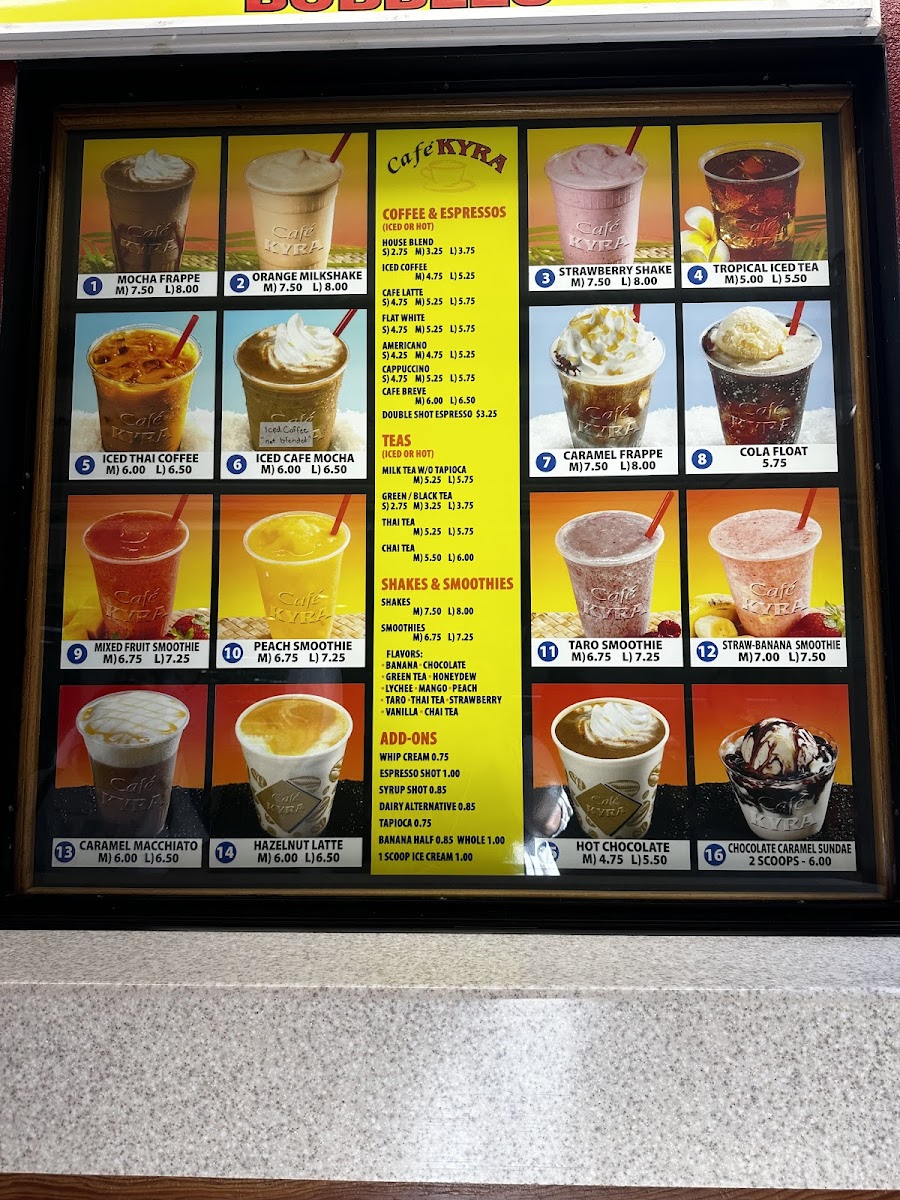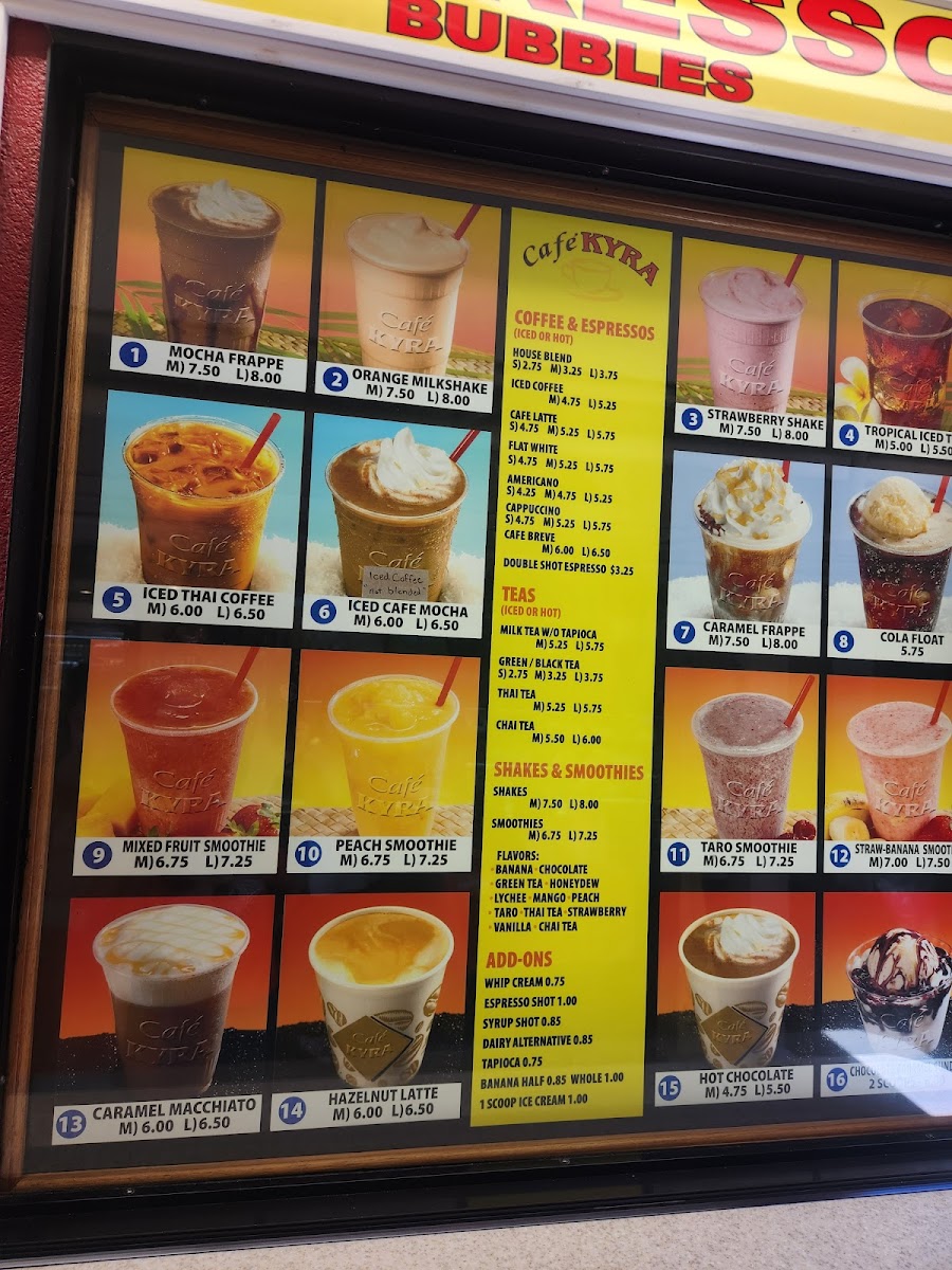 Whether you're a local or just visiting, Cafe KYRA is a must-visit destination for coffee lovers and boba enthusiasts alike. Stop by to indulge your senses in a space where every cup of coffee tells a story—your next favorite drink awaits!